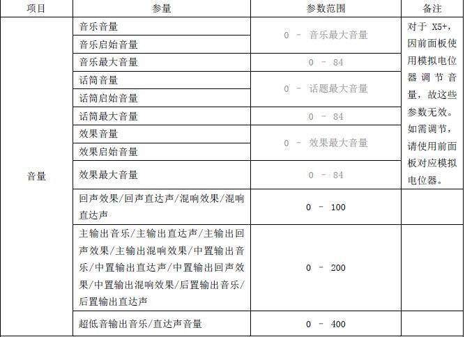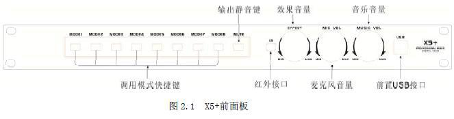 注:对于 X5+效果器,只能使用面板旋钮调节效果、麦克风和音乐音量;遥控器及PC 软件界面调节