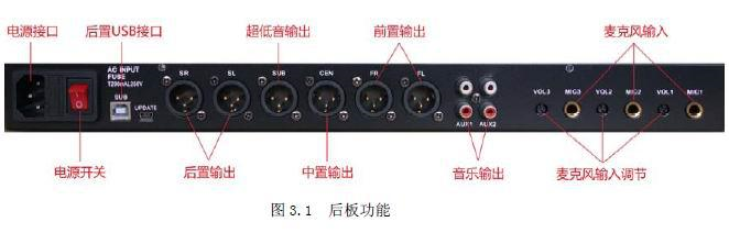 (4)、后置输出:后置信号的输出(左、右通道)接口;